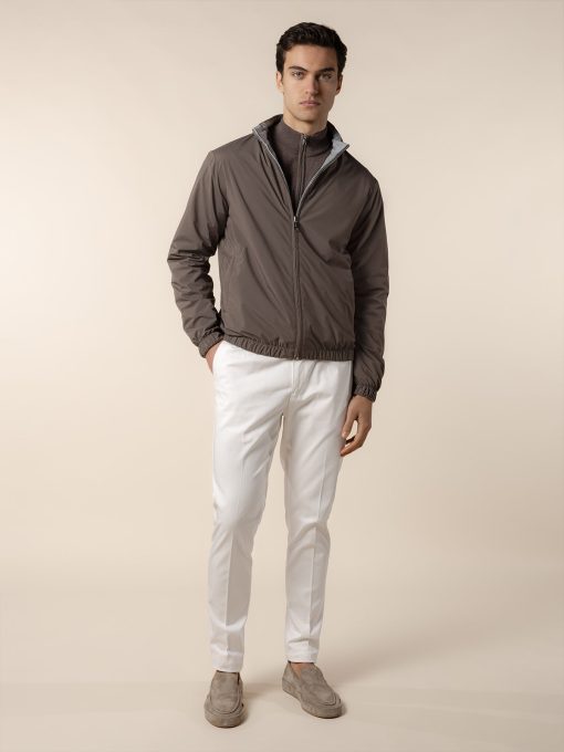 This Reversible Resort Jacket adds a luxurious touch to your leisurely days spent by the shore. Crafted from a soft matte outer shell, the jacket boasts a wind and waterproof finish, while being lined with a cashmere blend for lightweight yet sumptuous comfort. The lightly-padded design provides a warm embrace while exuding chic Mediterranean style.