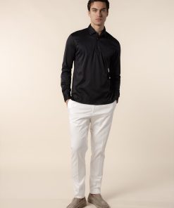 Long-sleeve polo crafted from luxurious interlock cotton for a refined, comfortable fit. Featuring a classic button collar, this polo is knitted from fine Egyptian cotton, offering an elegant drape and unparalleled softness. The extra-long staple and double-mercerized finish ensure a silky texture that endures with wear. A versatile essential for effortless layering throughout the year.