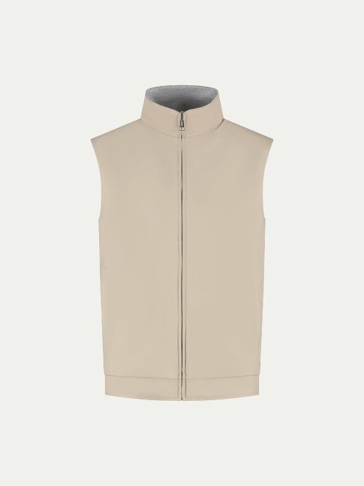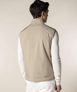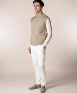 This Beige Body Warmer adds a luxurious touch to your leisurely days spent by the shore. The soft matte outer shell is crafted from recycled fish nets and boasts a wind and waterproof finish. The interior is lined with a cashmere blend for lightweight yet sumptuous comfort. The lightly-padded design provides a warm embrace while exuding chic Mediterranean style.