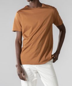 Short-sleeved T-shirt in super-soft cotton. Designed with a classic crew neck collar, this T-shirt is knitted from fine Egyptian cotton, so it drapes effortlessly and comfortably. The extra-long staple and double mercerized cotton is characterized by outstanding softness and a silky feel that maintains with wear. Ideal for layering throughout the year.