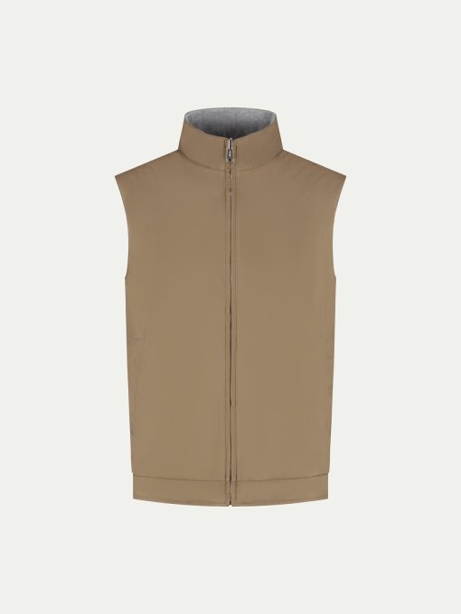 This Caramel Body Warmer adds a luxurious touch to your leisurely days spent by the shore. The soft matte outer shell is crafted from recycled fish nets and boasts a wind and waterproof finish. The interior is lined with a cashmere blend for lightweight yet sumptuous comfort. The lightly-padded design provides a warm embrace while exuding chic Mediterranean style.