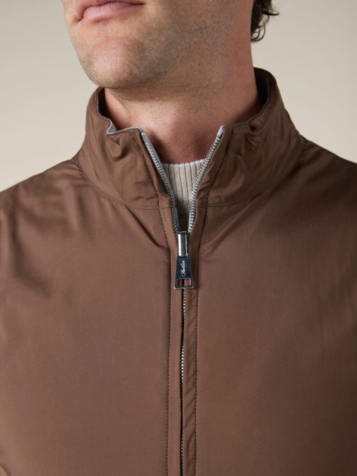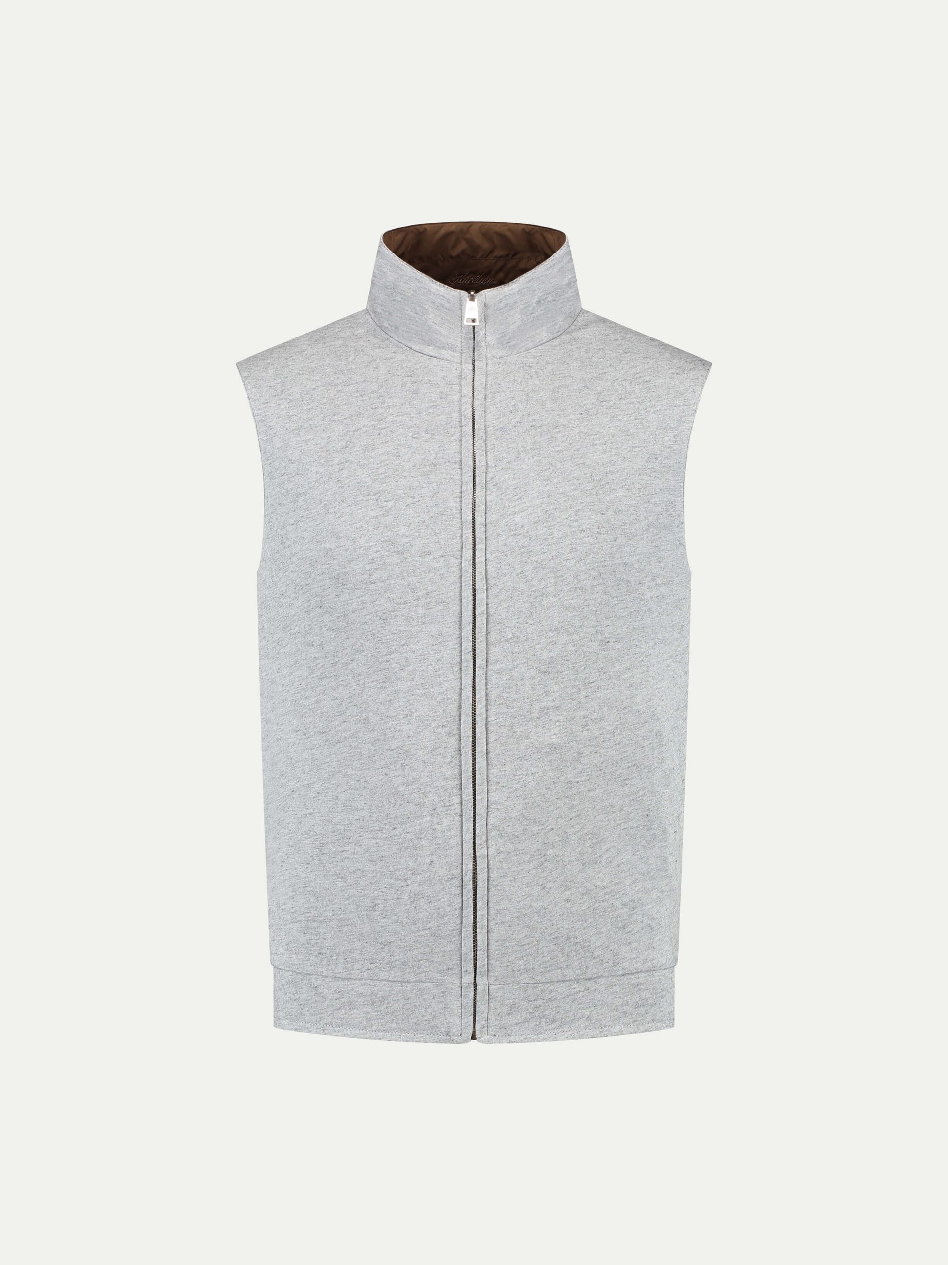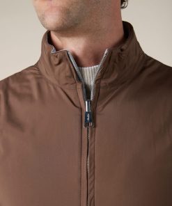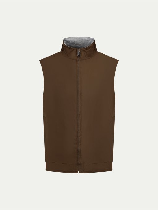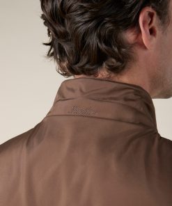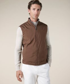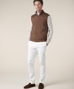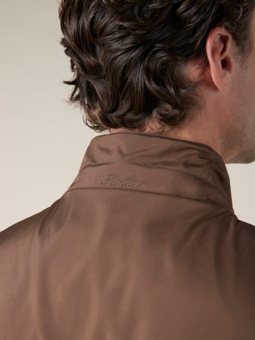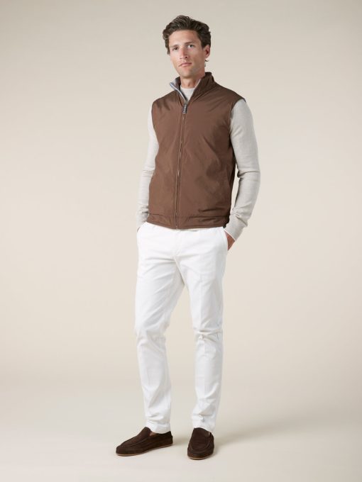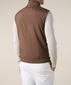 This Chocolate Body Warmer adds a luxurious touch to your leisurely days spent by the shore. The soft matte outer shell is crafted from recycled fish nets and boasts a wind and waterproof finish. The interior is lined with a cashmere blend for lightweight yet sumptuous comfort. The lightly-padded design provides a warm embrace while exuding chic Mediterranean style.