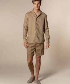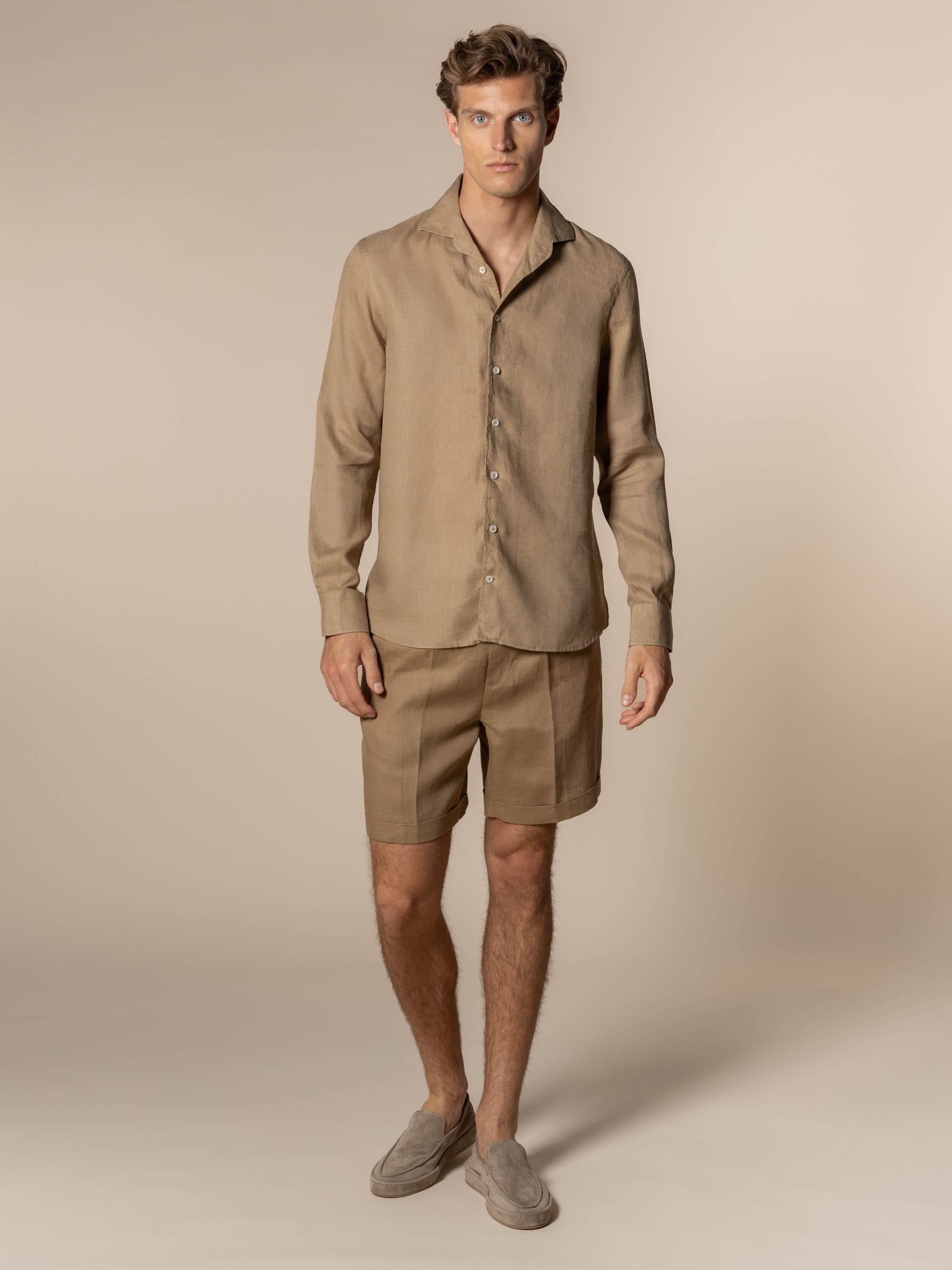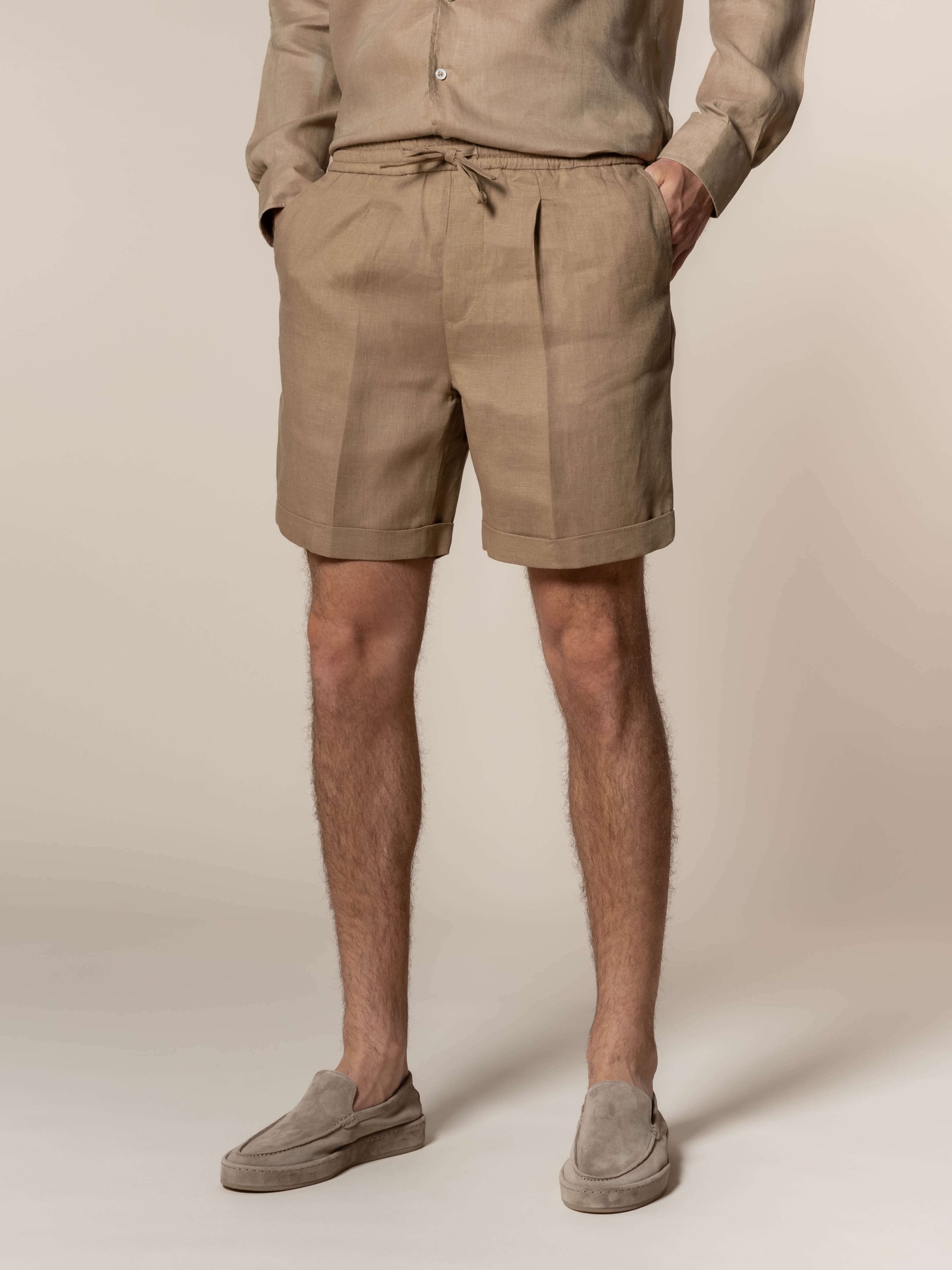 Aurélien Men’s Dark Taupe Linen Seaside Shorts | Dark