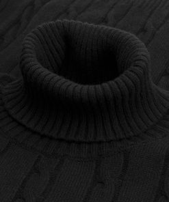 Aurélien Men’s Dolcevita Cable Knit Sweater Black | Dolcevita