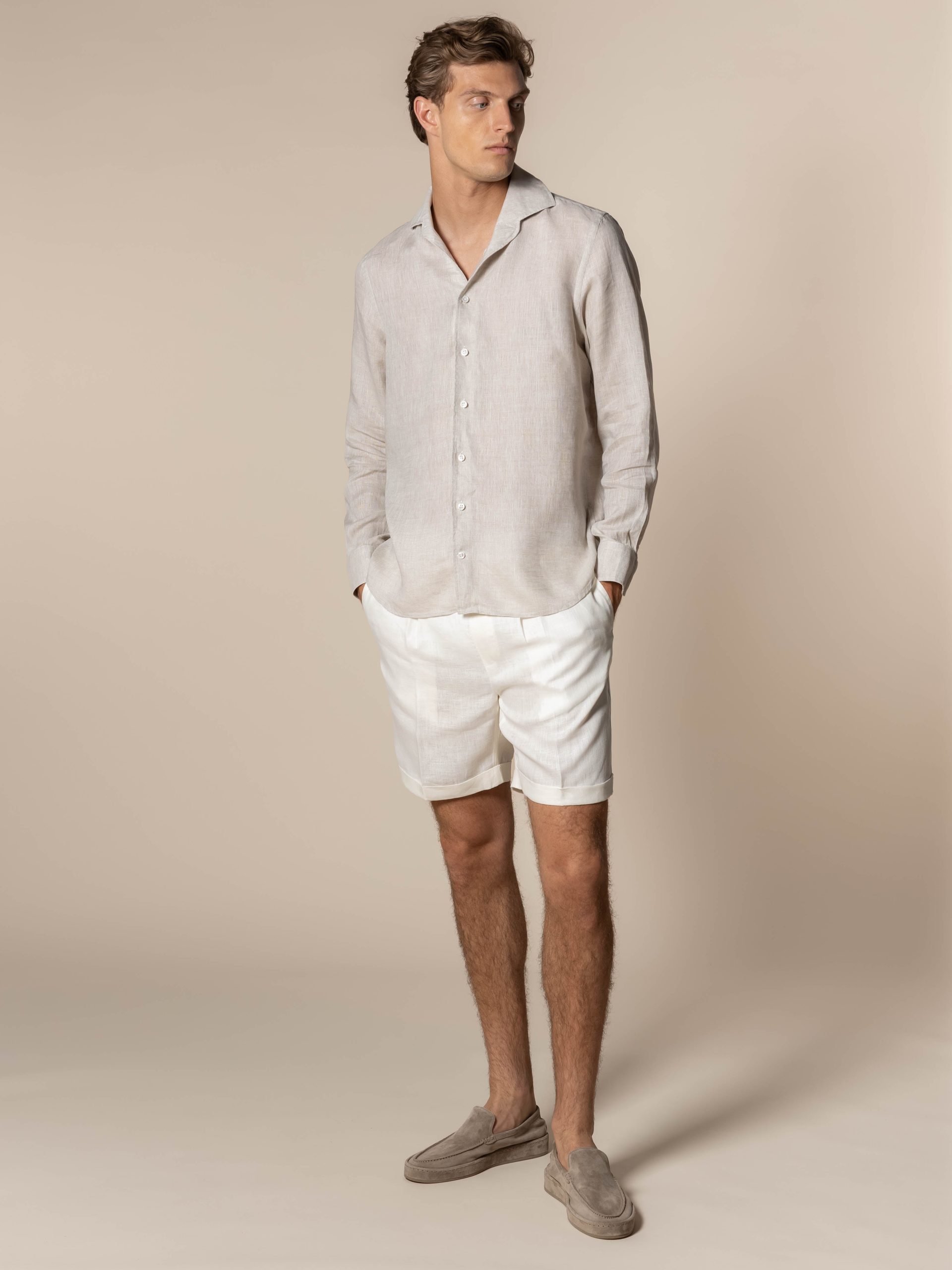 Aurélien Men’s Ecru Linen Seaside Shorts | Ecru