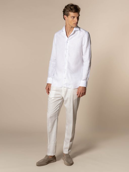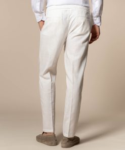 These Seaside Trousers are made from breathable linen and feature a comfortable drawstring waistband. Wear them with a lightweight polo shirt or loose button-down. These trousers are slim-fit and perfect for sunny days.