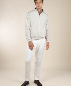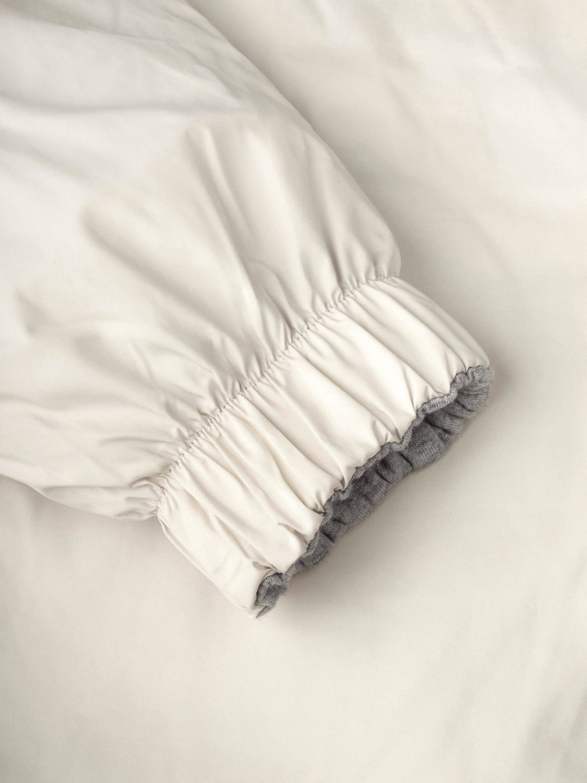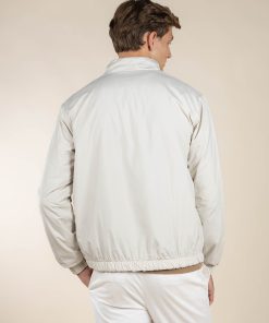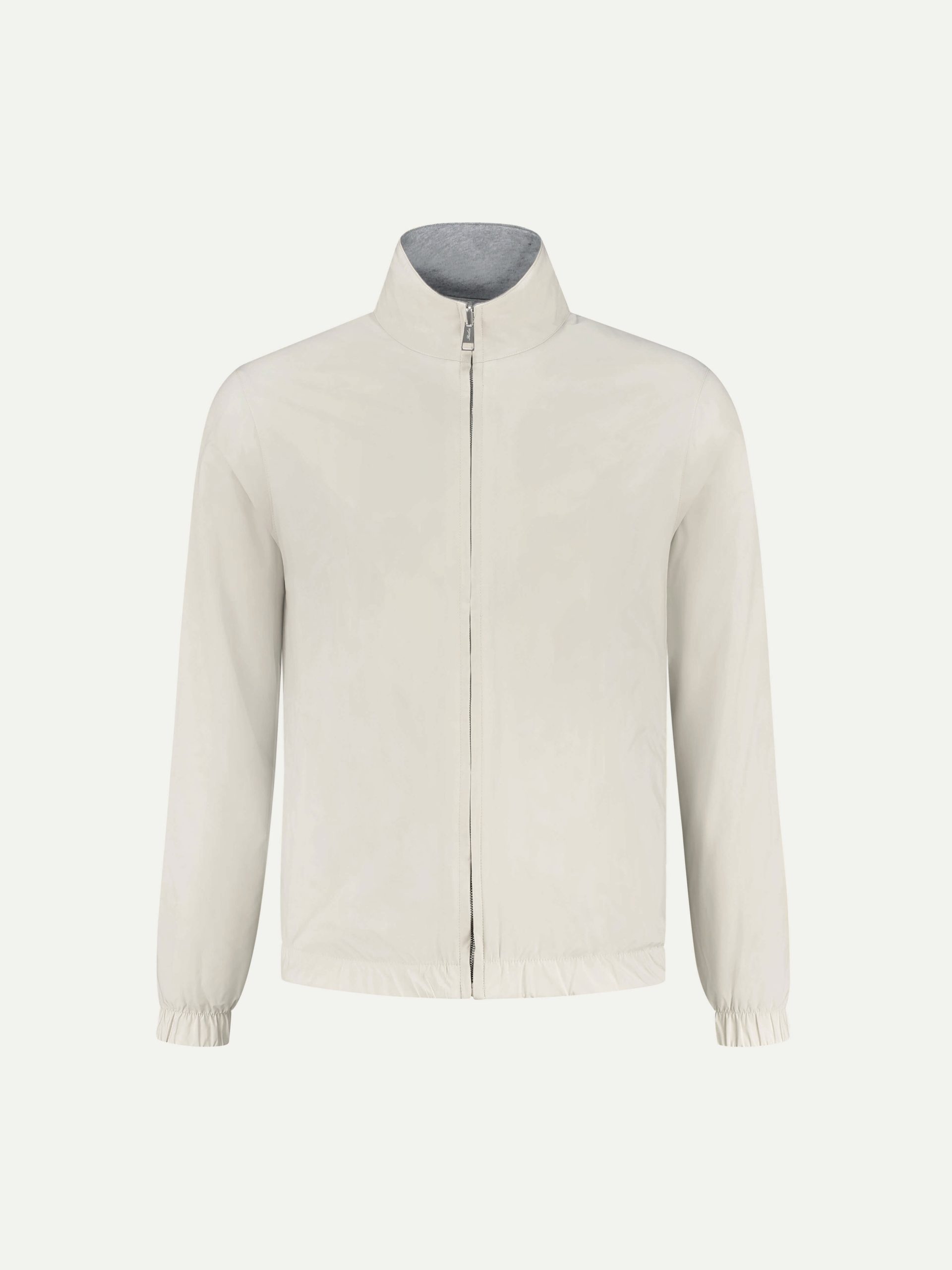 This Ecru Reversible Resort Jacket adds a luxurious touch to your leisurely days spent by the shore. Crafted from recycled fish nets, the jacket boasts a wind and waterproof fabric finish, while being lined with a cashmere blend for lightweight yet sumptuous comfort. The lightly-padded design provides a warm embrace while exuding chic Mediterranean style.