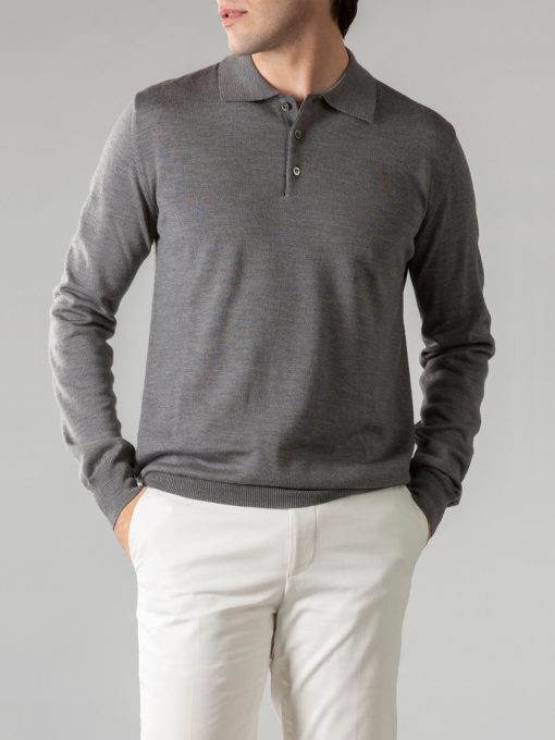 Aurélien Men’s Extrafine Merino Polo Dark Grey | Extrafine