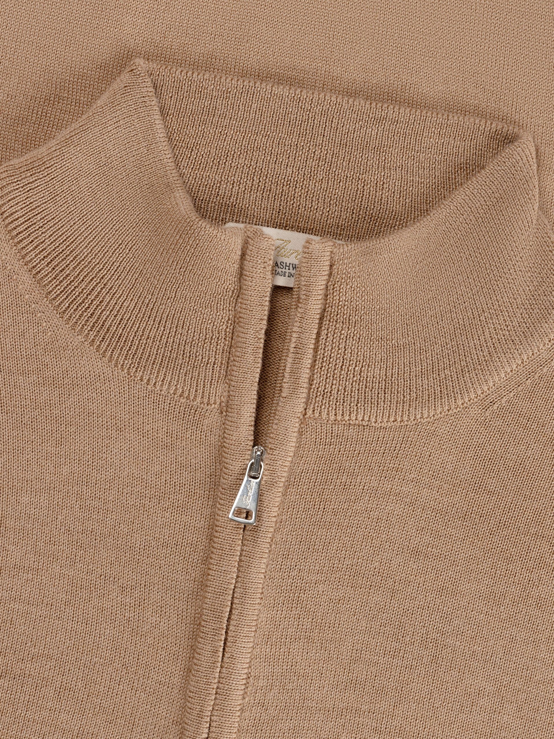 Aurélien Men’s Extrafine Merino Zipper Sweater Beige | Extrafine