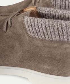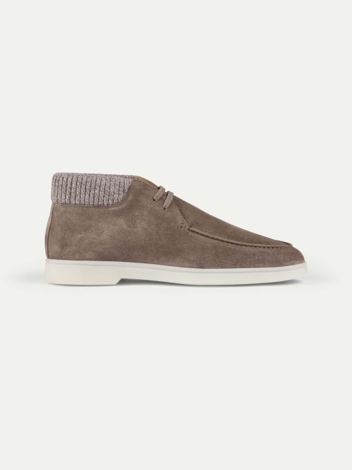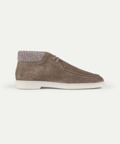 These Desert Boots have been made in Italy from supple suede and set on ivory coloured soles. The Cashwool® trims ensure extra comfort and warmth. The timeless, understated profile means they can be worn with practically any outfit – they’re a great way to make smart tailoring feel less formal.