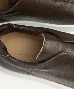 The Aurélien AUR3 Sneaker is a modern expression of understated elegance, combining minimalistic design with exceptional craftsmanship. Made from supple grain leather, this soft calfskin offers the luxurious feel of deerskin with enhanced durability. Its distinctive laceless silhouette creates a sleek and contemporary look, while white rubber soles, embossed with the Aurélien monogram, provide both lasting comfort and a refined finish. A subtle gold satin trim on the heel and tongue adds a signature touch of sophistication. With its flawless construction and quiet confidence, the AUR3 Sneaker captures the essence of modern luxury—effortless, refined, and unmistakably Aurélien.