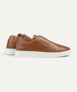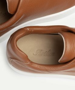 The Aurélien AUR3 Sneaker is a modern expression of understated elegance, combining minimalistic design with exceptional craftsmanship. Made from supple grain leather, this soft calfskin offers the luxurious feel of deerskin with enhanced durability. Its distinctive laceless silhouette creates a sleek and contemporary look, while white rubber soles, embossed with the Aurélien monogram, provide both lasting comfort and a refined finish. A subtle gold satin trim on the heel and tongue adds a signature touch of sophistication. With its flawless construction and quiet confidence, the AUR3 Sneaker captures the essence of modern luxury—effortless, refined, and unmistakably Aurélien.