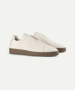 The Aurélien AUR3 Sneaker is a modern expression of understated elegance, combining minimalistic design with exceptional craftsmanship. Made from supple grain leather, this soft calfskin offers the luxurious feel of deerskin with enhanced durability. Its distinctive laceless silhouette creates a sleek and contemporary look, while brown rubber soles, embossed with the Aurélien monogram, provide both lasting comfort and a refined finish. A subtle gold satin trim on the heel and tongue adds a signature touch of sophistication. With its flawless construction and quiet confidence, the AUR3 Sneaker captures the essence of modern luxury—effortless, refined, and unmistakably Aurélien.