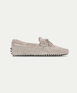 These shoes are unmistakably leisure oriented. They are the symbol of Mediterranean getaways and ultimate comfort. This style features luxurious Softey® suede with exposed hand stitching, hot-stamped emblem, front tie, iconic rubber pebble sole and combines diverse materials in a classically casual contrast.
