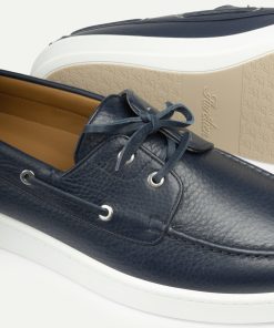 The Aurélien Boat Sneaker is a refined expression of coastal elegance. Crafted from supple grain leather with a deerskin-like touch, it evokes the quiet luxury of life by the sea, where the light is soft and time flows with ease. Lined in smooth leather and finished with durable rubber soles, it is designed for effortless movement and lasting comfort. Minimal in form, versatile in spirit, and made for sunlit escapes. This is joie-de-vivre, shaped into every step.