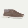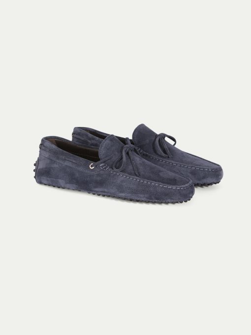 These shoes are unmistakably leisure oriented. They are the symbol of Mediterranean getaways and ultimate comfort. This style features luxurious Softey® suede with exposed hand stitching, hot-stamped emblem, front tie, iconic rubber pebble sole and combines diverse materials in a classically casual contrast.