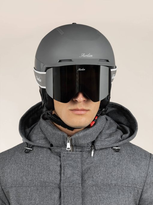 The Aurélien Snow Jacket seamlessly blends performance and style, making it perfect for both skiing adventures and city outings. Crafted from a soft cashmere wool blend with insulating padding, it offers exceptional warmth and comfort. A practical zip pocket on the sleeve keeps your ski card secure, while its tailored length ensures freedom of movement. Pair it with our grey Ski Goggles and helmet for the slopes, or wear it in the city for a refined, versatile look.