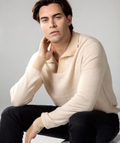 This buttonless polo has been crafted from pure cashmere that’s known for its remarkably soft touch. The subtle jacquard knit provides a luxurious and distinctive touch. This item is sure to keep you warm on colder days.