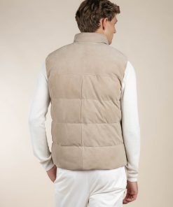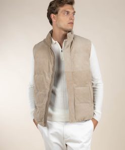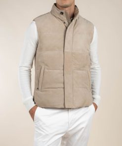 Expertly crafted in Italy, the Light Beige Suede AUR1 Body Warmer offers luxurious comfort and practicality. The ultra-soft suede is treated with a water-repellent finish, making it perfect for travel and leisure. Its relaxed cut and crease-resistant material make it a versatile addition to any wardrobe.
