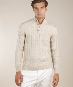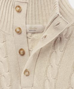 This sweater has been meticulously crafted in Italy using a luxurious blend of Cashmere and Extrafine Merino wool, renowned for its exceptional softness. Featuring a snug button-up funnel neck and a distinguished cable motif, the Button Sweater is designed to keep you cozy and warm even on the coldest days.