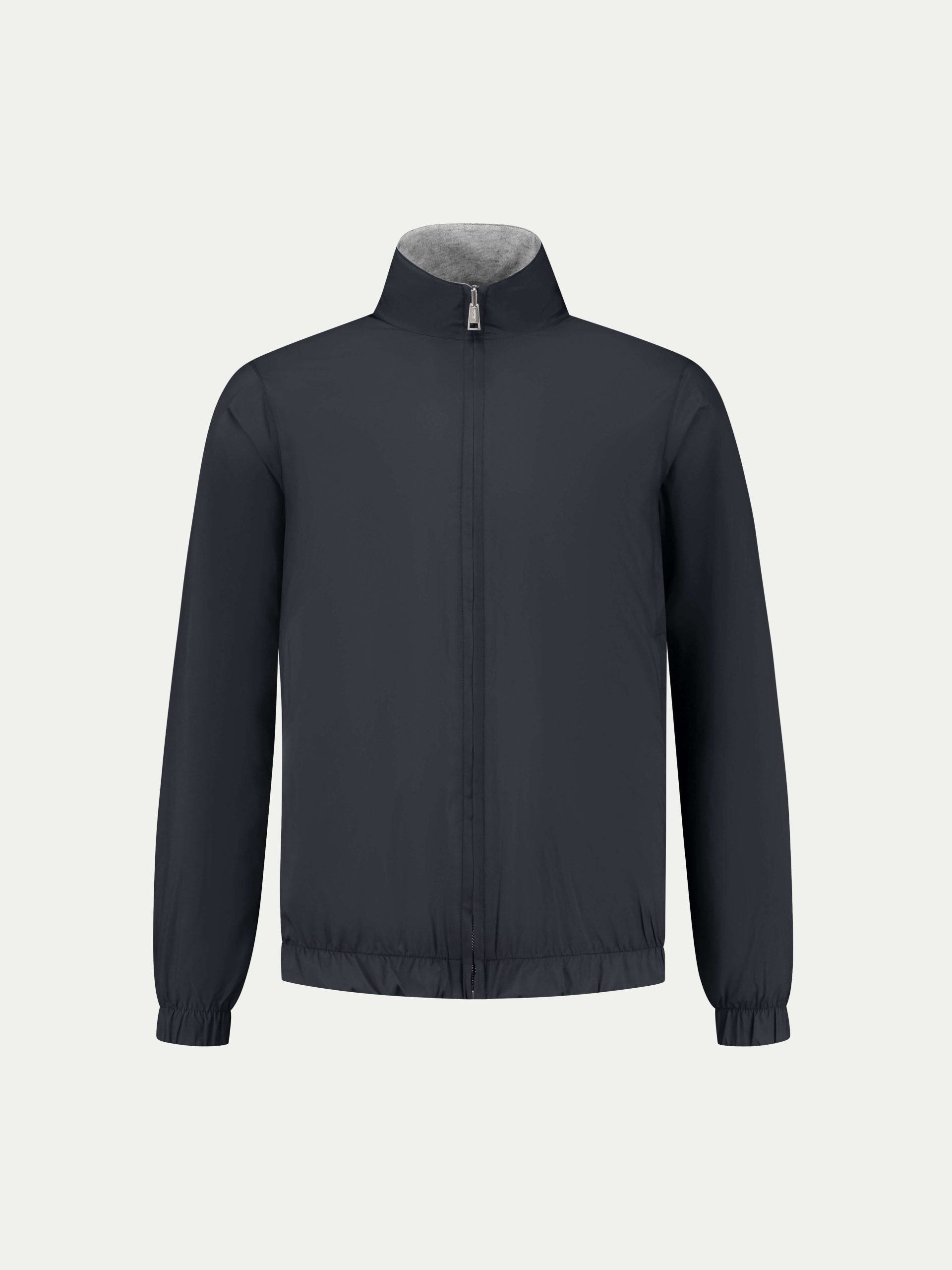 This Navy Reversible Resort Jacket adds a luxurious touch to your leisurely days spent by the shore. The soft matte outer shell is crafted from recycled fish nets and boasts a wind and waterproof finish. The interior is lined with a cashmere blend for lightweight yet sumptuous comfort. The lightly-padded design provides a warm embrace while exuding chic Mediterranean style.