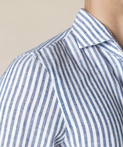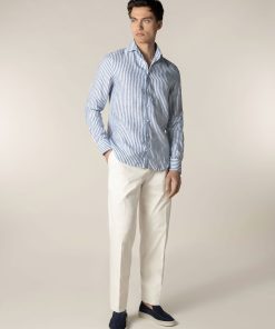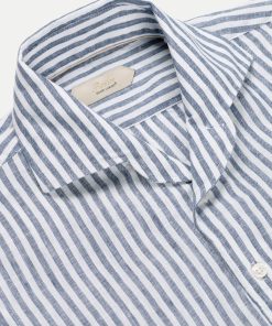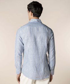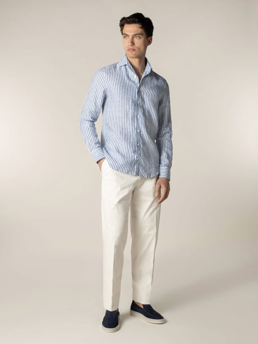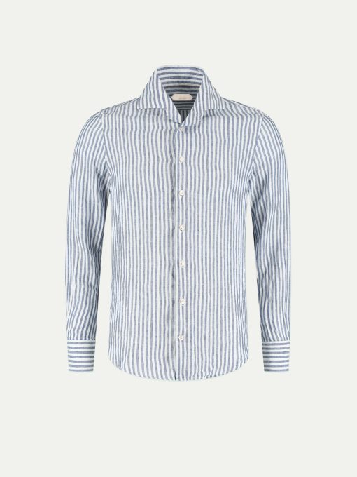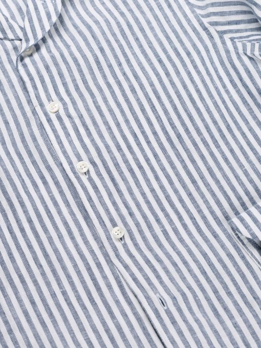 The Aurélien Striped Seaside Shirt is a refined take on our signature Seaside Shirt, now featuring an elegant striped pattern. Crafted from breathable linen, it’s designed for effortless comfort in warmer months. Tailored with a spread collar with facings, it maintains a sharp look even when worn open. Perfect for both casual and evening wear, whether you’re on holiday or enjoying leisure time in the city.