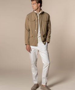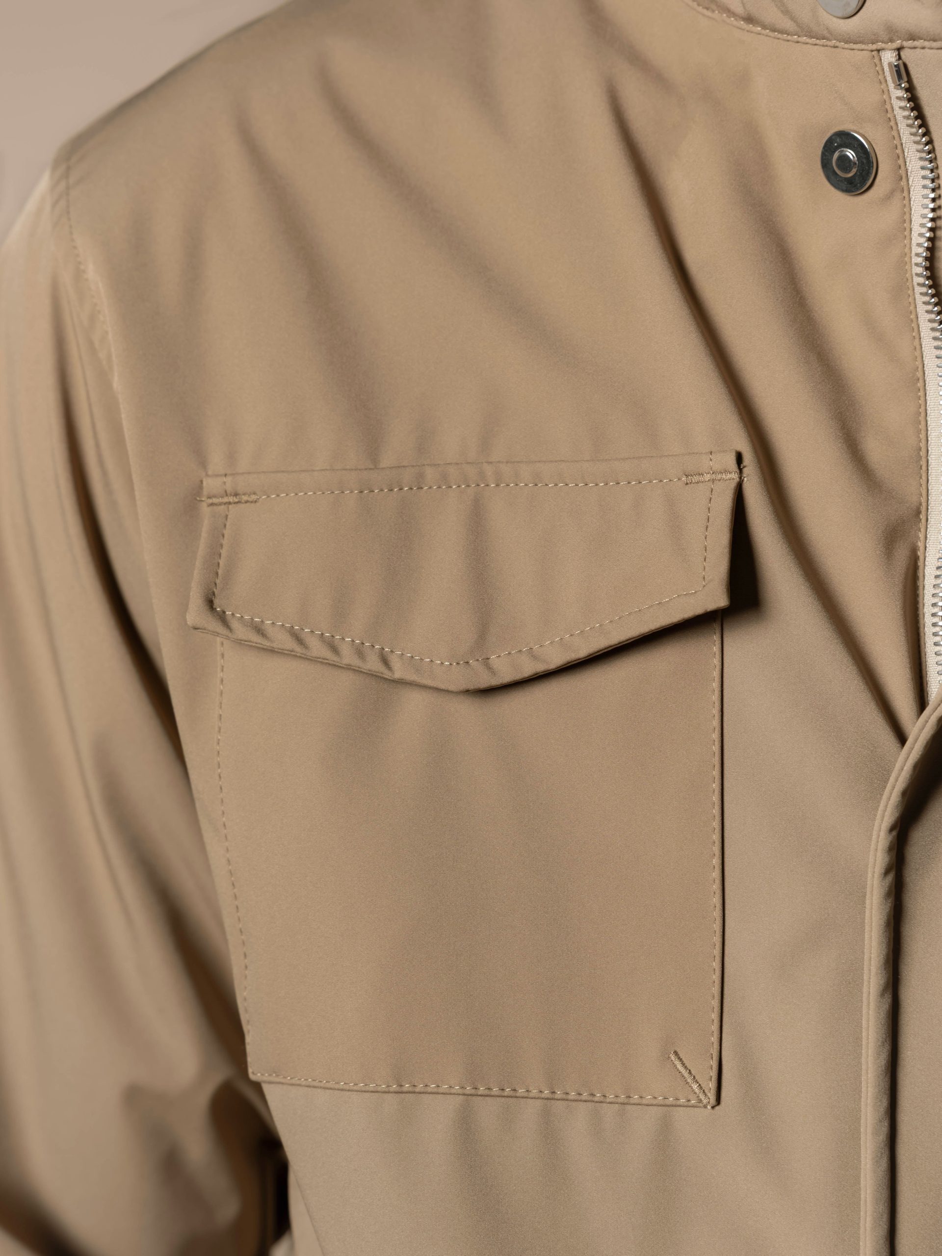 Blending innovation with timeless style, the Magnetic Field Jacket redefines outdoor elegance. Crafted from a soft, matte technical shell made from recycled fishing nets, it is both windproof and waterproof, offering protection with a refined touch. Inside, a cashmere-blend lining delivers lightweight comfort. Innovative magnetic closures provide a seamless, effortless wearing experience, while subtle padding maintains a sharp, streamlined silhouette. Signature Aurélien details — including the discreet embroidered logo at the back of the neck — add a final note of understated luxury. Infused with Mediterranean spirit, the Field Jacket is an essential symbol of sophisticated adventure.