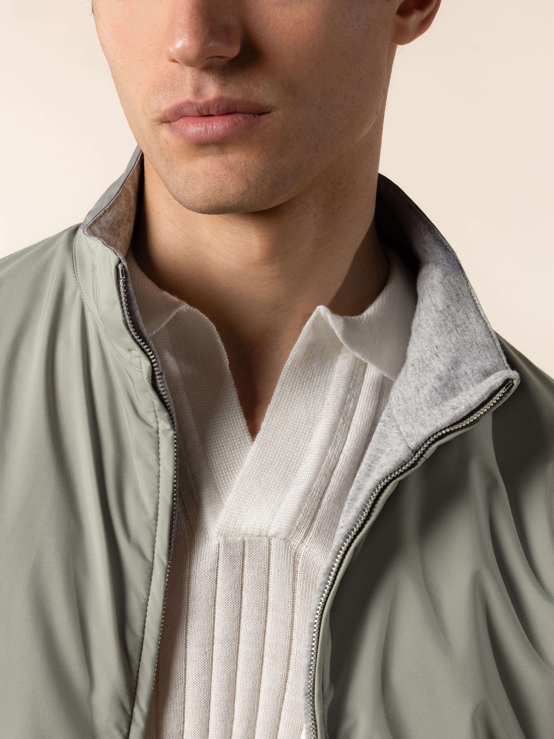 This Reversible Resort Jacket adds a luxurious touch to your leisurely days spent by the shore. Crafted from a soft matte outer shell, the jacket boasts a wind and waterproof finish, while being lined with a cashmere blend for lightweight yet sumptuous comfort. The lightly-padded design provides a warm embrace while exuding chic Mediterranean style.