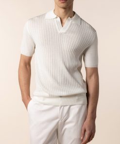 Aurélien Men’s Shortsleeve Buttonless Ribbed Polo Ivory | Shortsleeve