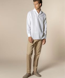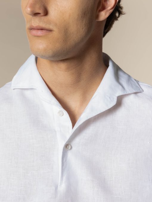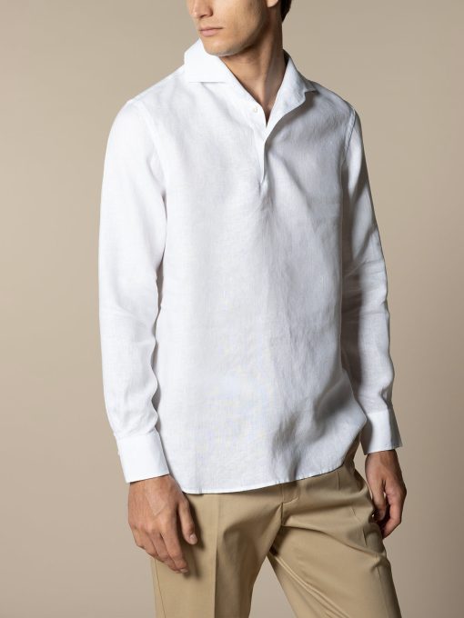 The Aurélien Pop-over Shirt is a refined option for the warmer months. Made from breathable linen, it’s tailored with a spread collar with facings to ensure it stays in place when wearing it open. Perfect for both casual and evening wear during the holidays and for leisure time in the city.
